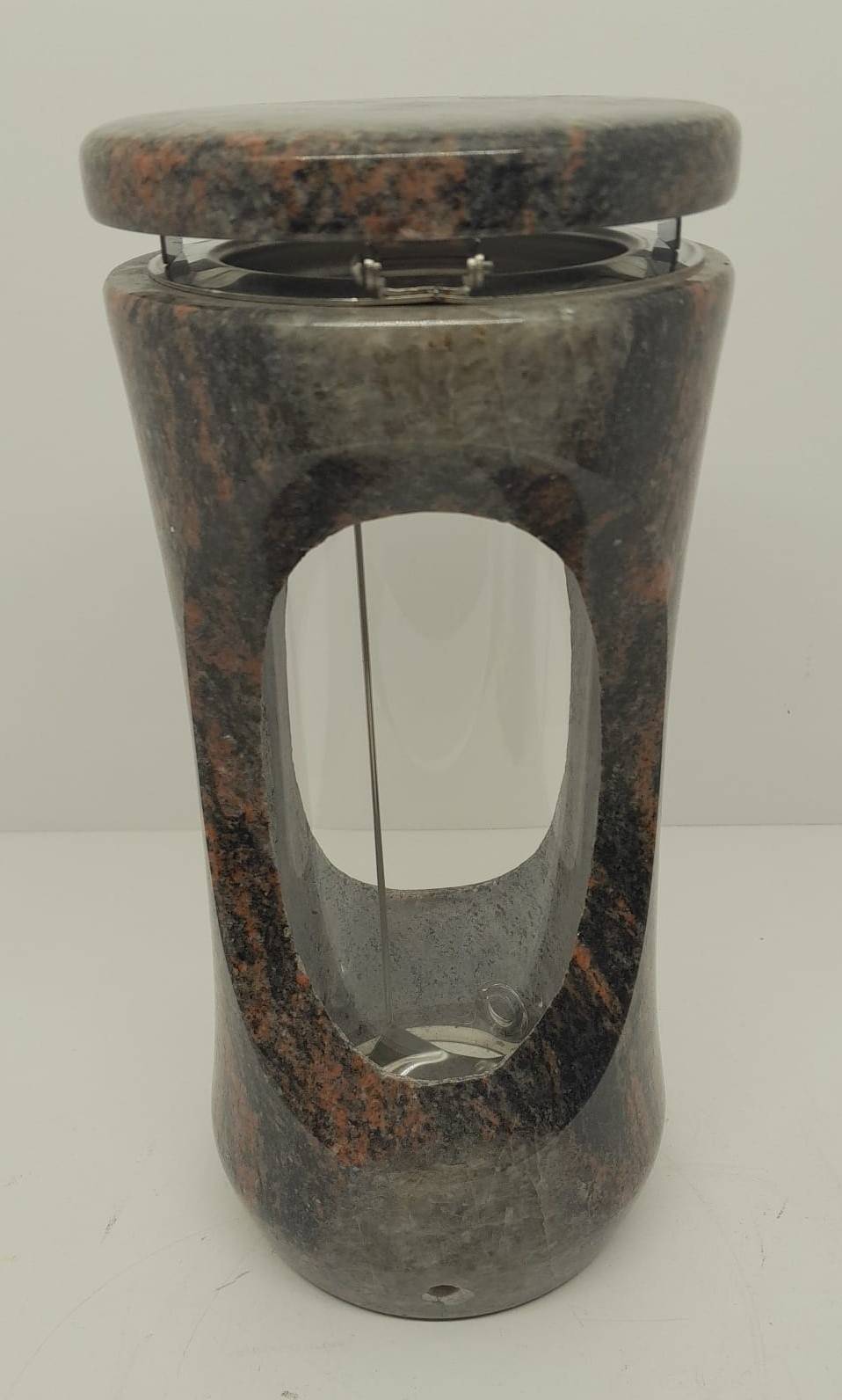 Na zadní straně lucerny je patrný šedý krystal, který nemá vliv na funkčnost ani kvalitu výrobku, jedná se o přírodní vzhled kamene.